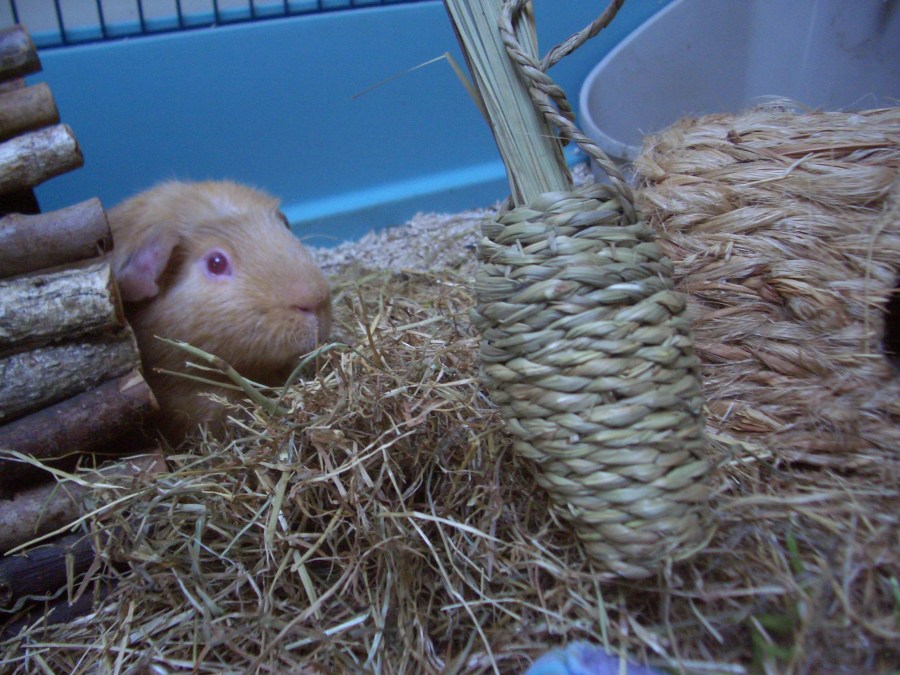 Anyway the radio has come on now.  Even though it’s dark as in evening dark, not morning dark (when it was coming on till mummy changed the clocks).  It’s all very confusing.  I’ll just eat this carrot she hid under the hay. Mmm there are some herbs here too.  And the hay carrot Auntie Dawn gave us. Yummy.