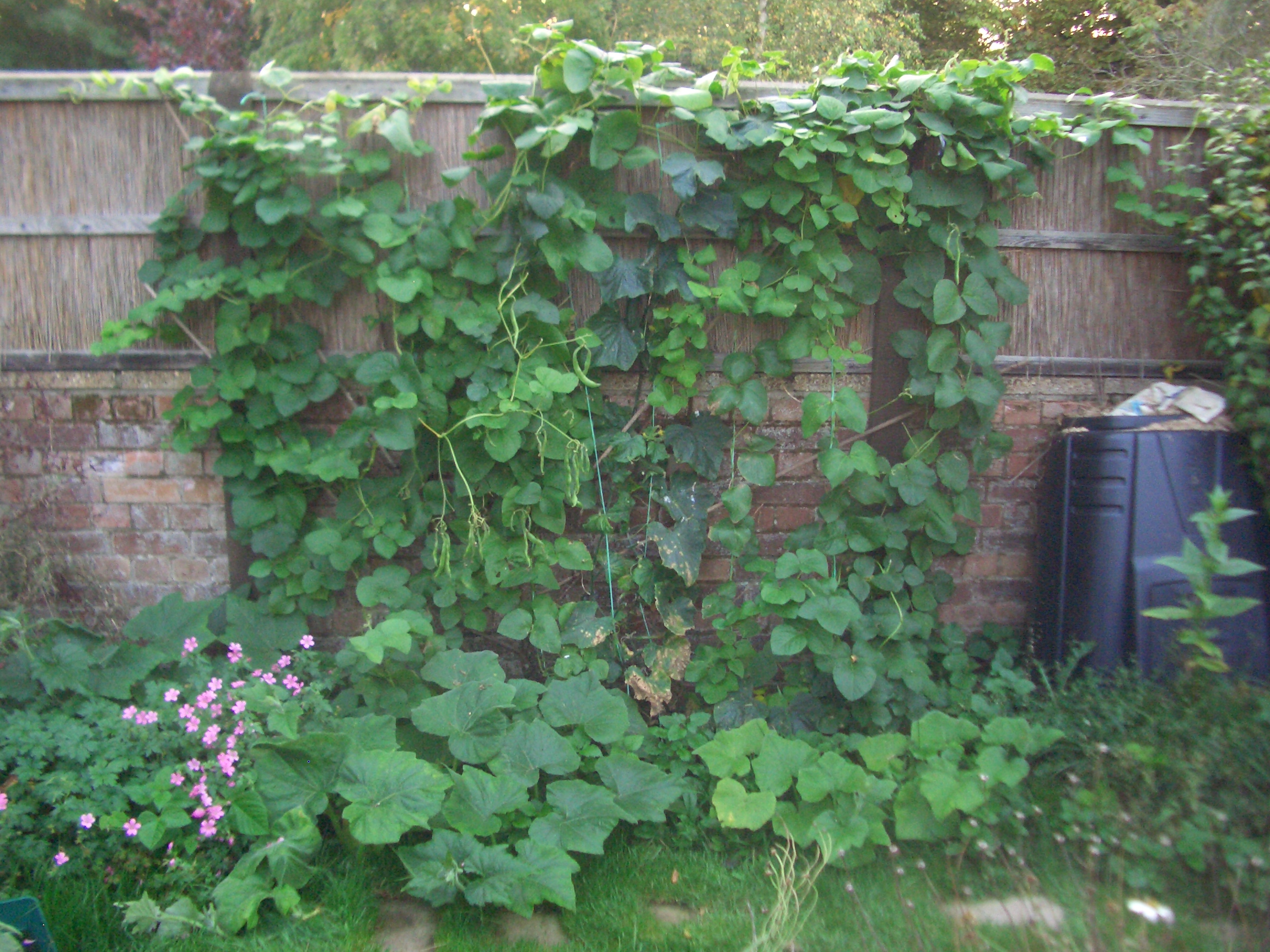 Mummy said her beans and raspberries did really well last year in spite of the lack of rain. I think she looked after them well, that’s why. The raspberries live at the back of the garden in the shade of the fence. The ones on the left have fruit first, then the ones on the right, then the onces in the centre. They went all the way to the end of September then the ones of the right did another month. And we had fresh leaves all that time too. Raspberry leaves have little prickles on the underside but we can eat those just fine.