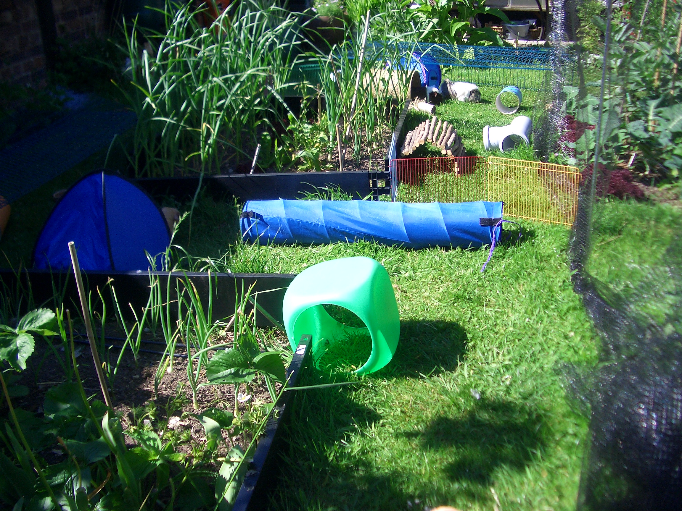 Usually when mummy lays our runs out in the garden between the vegetable patches the X-roads is where our runs meet. Sometimes one of us will get the space in the middle of the X-roads, sometimes she will angle our runs so we both meet in the middle. It’s hard to explain. I’m hoping Mummy will find a picture of the X-roads. A picture tells a thousand words they say. I don’t want to use a thousand words to tell you. You might get bored.
