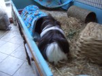 Dougall and I got a new snuggletunnel. And a lot of herbs. Hec got a new grassy tunnel and Vic & Humphrey got new grassy hutches. Humphrey says his is too small but Mummy’s been helping him enlarge the entrances. I think Colman and Kevin got new grassy tunnels too. And we all got some more herbs. We had a nice time.