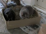 Please excuse the state of our floor. Mummy sweeps it up when we’re all back on our cages. Then we have breakfast. Yummy!