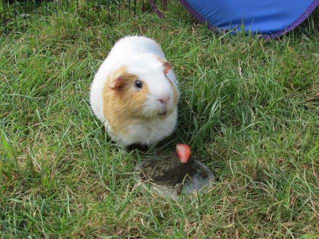 Bertie has had his own little stretch of grass that goes around the corner to meet up with Biggles and Percy, then their bit comes back alongside the veggie patch to meet us.  I like bein’ able to speak to all of them.  I spend a fair few minutes each day standin’ at the bars, whifflin’ at them to come across and chat.  Sometimes they do, sometimes they don’t.  Depends how busy they are with the mowin’, I’d say.