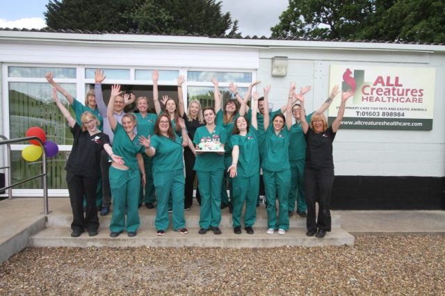 When Mummy first took George there, it was quite small, just Dr Louise and Dr Sally and Uncle Stuart on Reception. There were the same consulting rooms and just one room for operations and xrays, and a bay for sick animals next to the staff kitchen. Now they have a huge area behind the consulting rooms, with special rooms for xrays, scans and operations. Each set of animals has its own room to recover in, so one for dogs, one for cats, one for reptiles, one for guinea pigs and rabbits, and one for birds! Mummy says they also have lots of vets working there, and there’s a picture of some of them and the nurses above on their tenth anniversary.