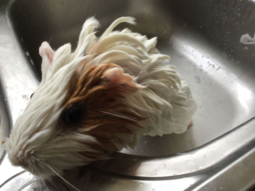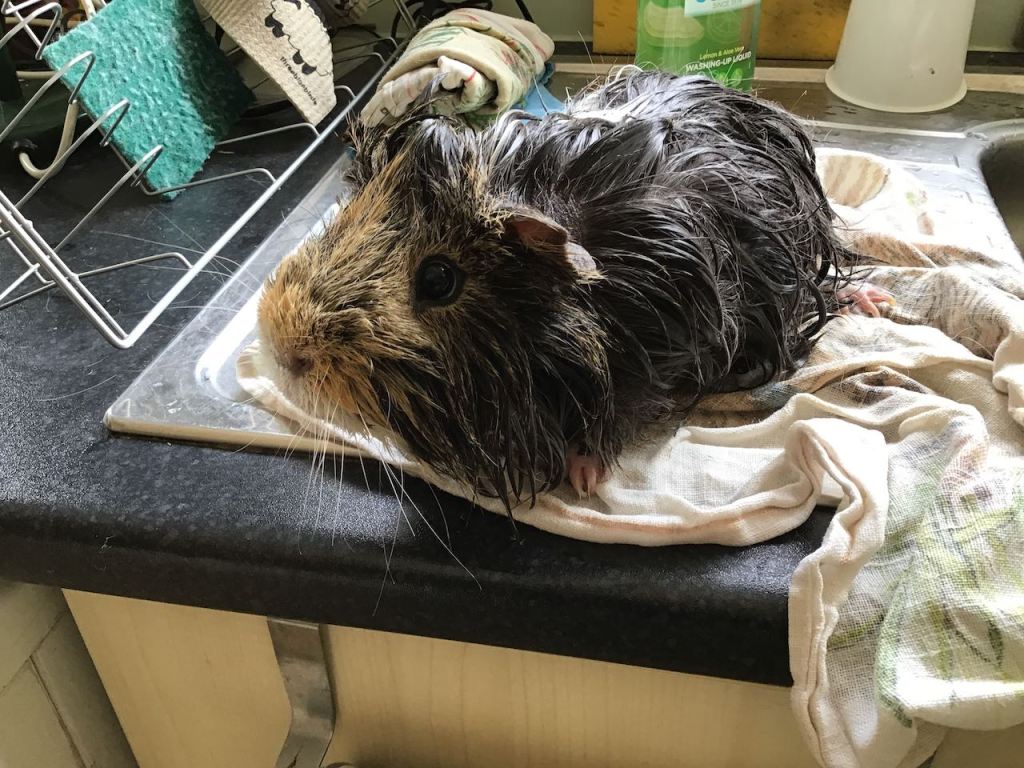 They might not like it, but nothing’s cuter than a wet Guinea Pig! And they look so clean and fluffy afterwards!
