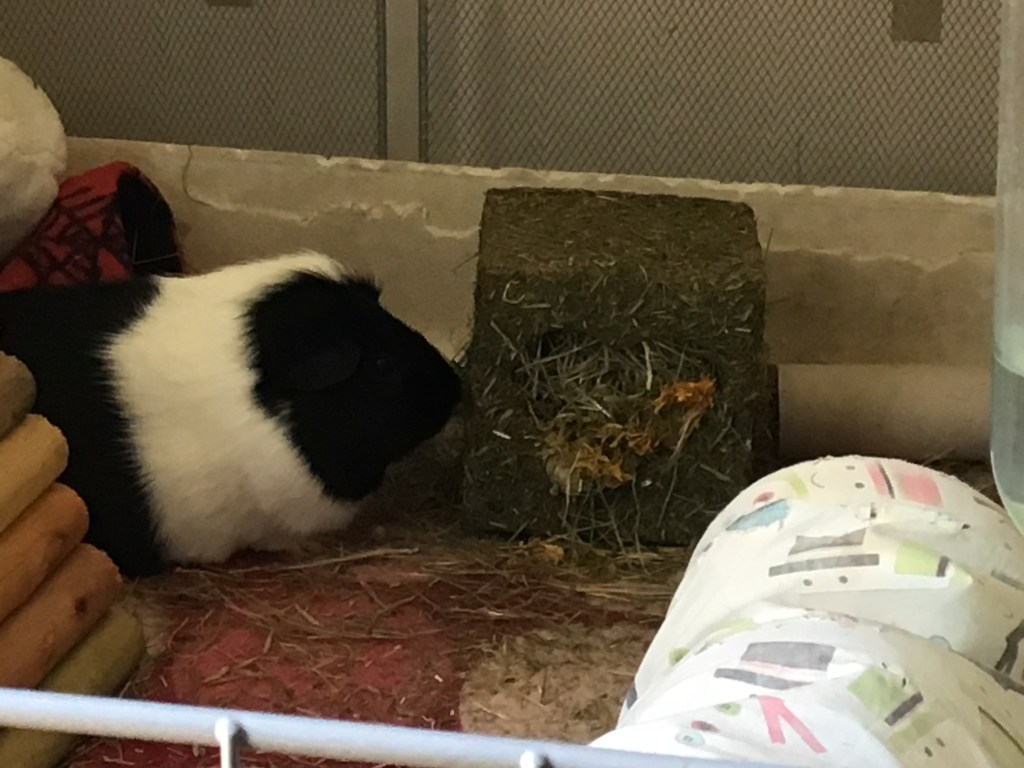 Locksley looked at his, and decided to nibble at it daintily. Ludo looked at his and ran away! Mam pushed it further back in his cage so he could get used to it while not having to go around it the whole time, and he’s been eating the hay and herbs in it since. I think he’s enjoying it, but he’s on the other side of Locksley so I can’t really see.