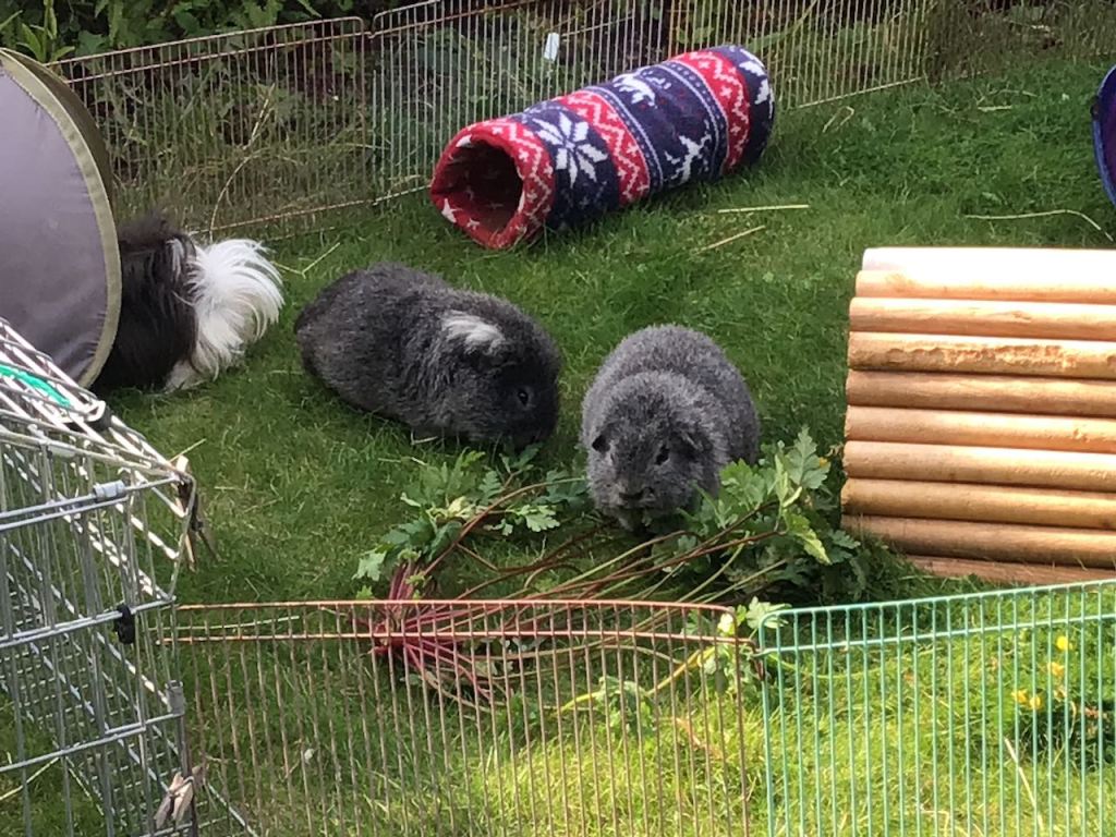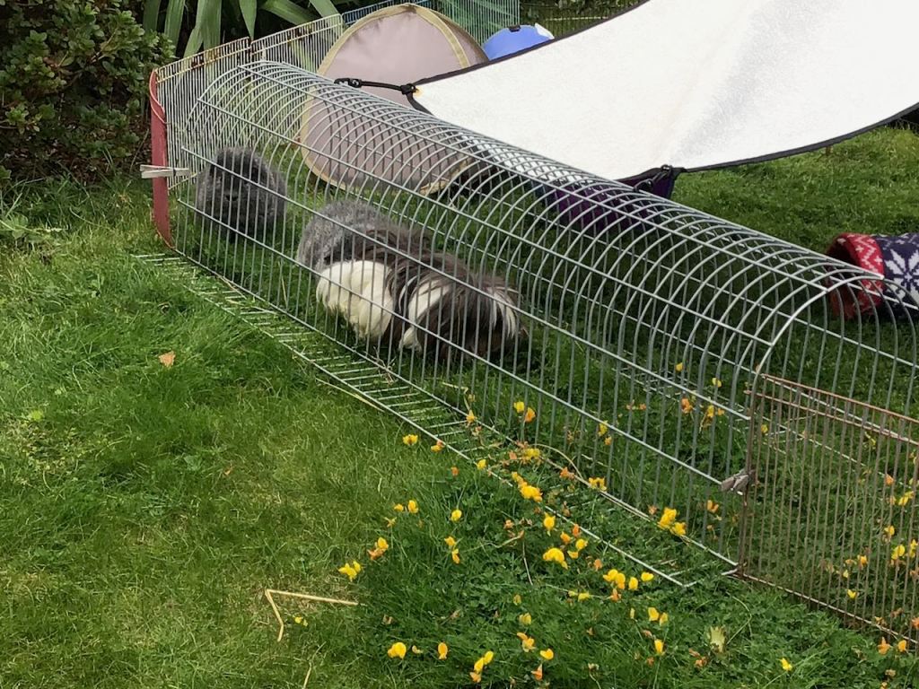 We were out in the garden again at the weekend, enjoying sunshine and early shade, but plenty of warmth. Mummy has our run close to the house so although there was a little sun in it today, we were in shade for most of the time. And that was good because it was sunny and warm again. Mummy was sitting in the shade with her hat on. And occasionally talking to us or taking photos.