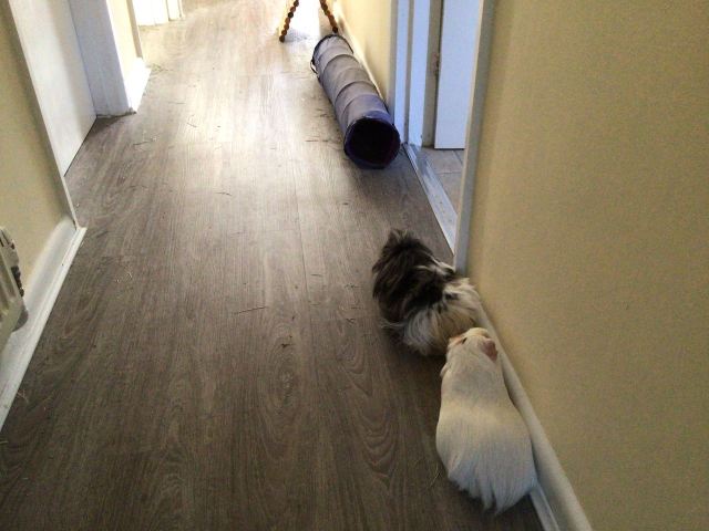 Then she puts me back down on the floor and I run along the corridor back to our room, and see what the others are up to. Then Mummy cleans our beds and after a bit of a break to give us a good long run time, she takes Ludo out for his cuddle. Then she comes back and puts us back in our clean runs before Ludo comes into the room.