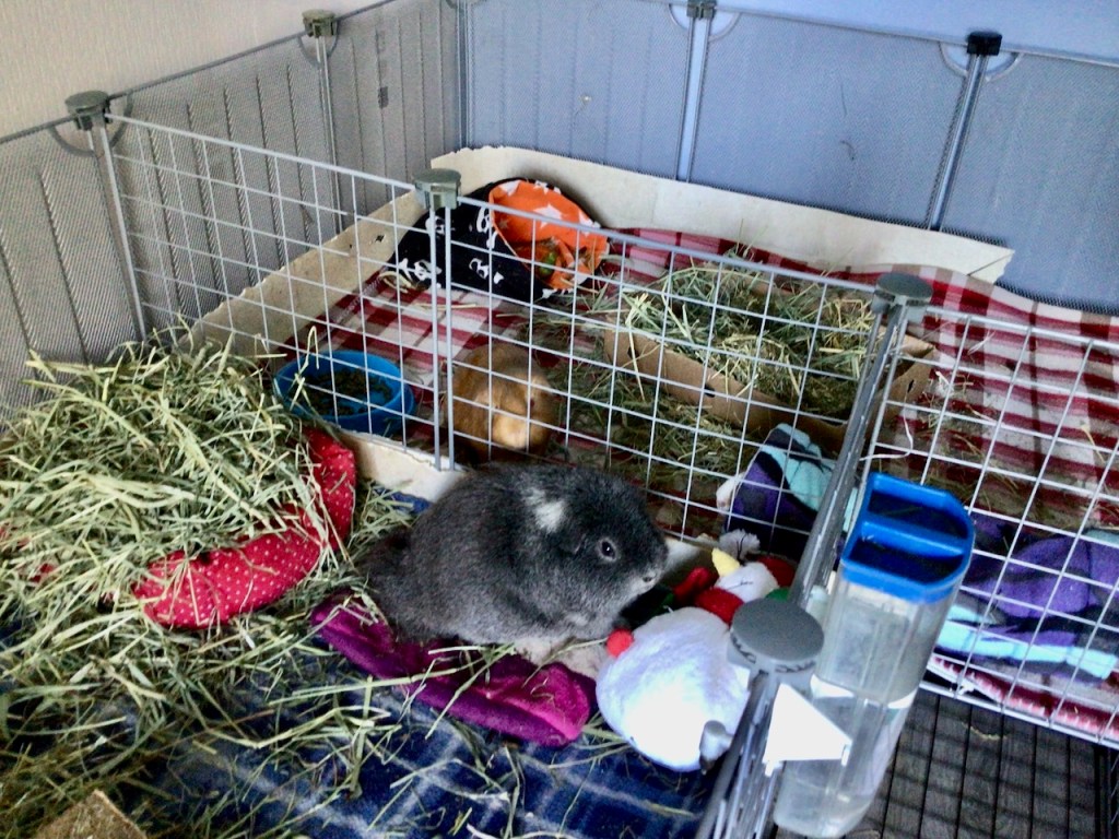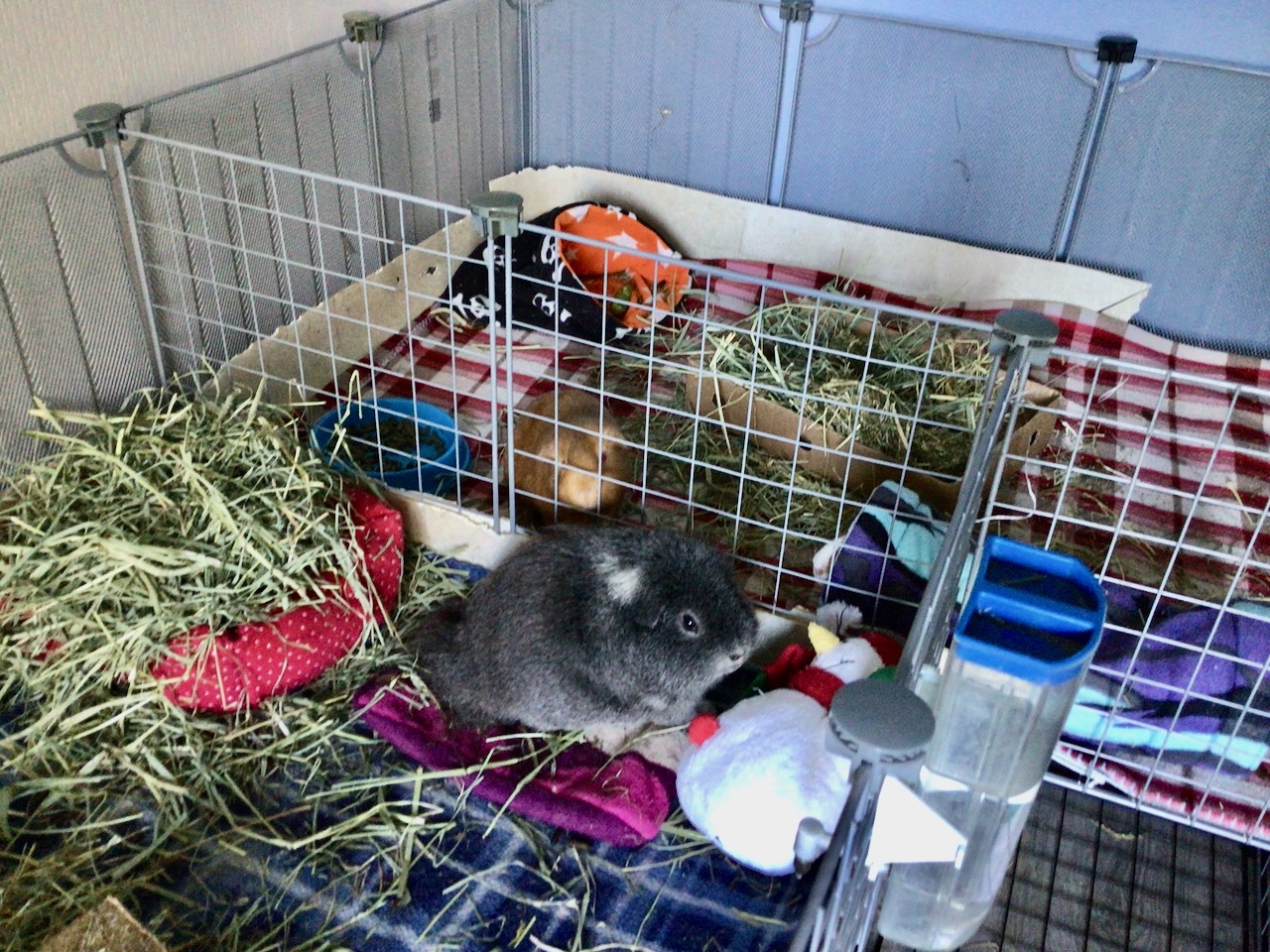 They live in the new run at the end by the blue wall. It’s turned on its end, not like when Biggles was there. And Ludo’s has changed on its end so it doesn’t stick out in front of the window. I’m not sure whether he likes it or not. But now we know it was all to make a bigger run for the littlies.