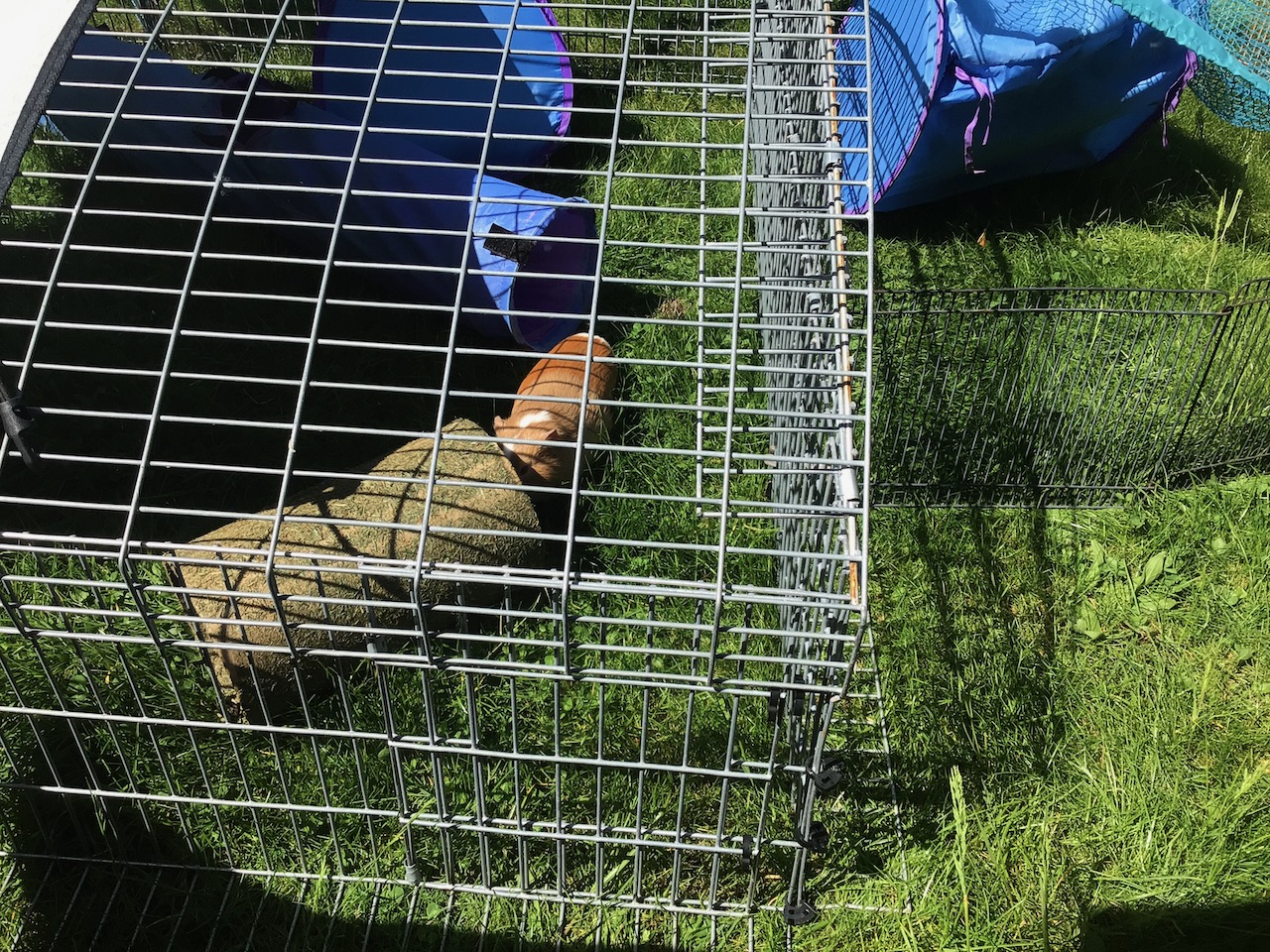 We had some grass time later in the week. It’s been cool and damp since our holiday, but Friday and Saturday we went outside. I was wondering what was going to happen. The new boys went in the enclosed run and Ludo had a separate one around one side, and me on the other, like I was before.