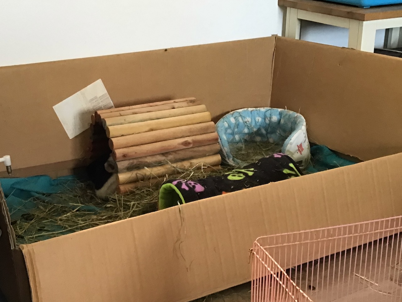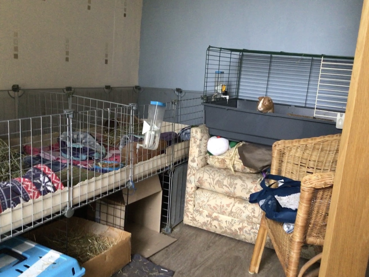 So Mummy spent all of yesterday working hard to rearrange everything in our room and the summer house and the spare room, to give us each the same space. I think she was disappointed she couldn’t leave Victor and Locksley with four-panel runs, but she was just too tired to do the difficult final changes. She says we can stay like this for now, and she’ll see what else she can do later. So I’m still in the same place, and the others look like this photo.