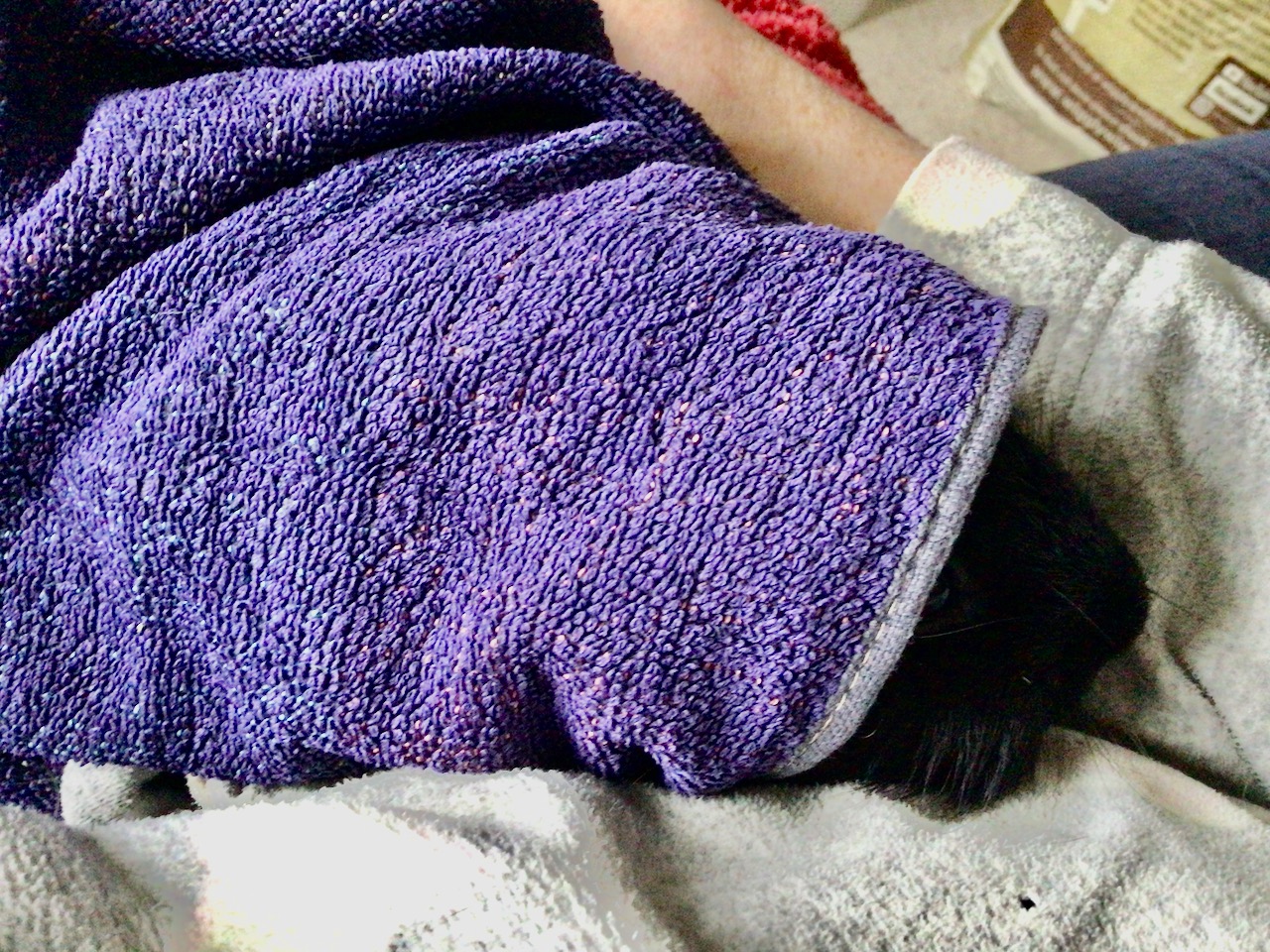 Oh, I forgot to tell you I had a bath. That was the morning before I went to the vet. Mummy put me in the little bath and the water was nice and warm and it flowed right over me and then Mummy put some cream on me and it went all bubbly. I made it bubble a bit more and she laughed at me I don’t know why. Then she took me out of the bath, and wrapped me in lots and lots of towels. They got wet very quickly so she gave me another dry one until I stayed with a dry one and then we sat and had my cuddle as usual and I had my cucumber.