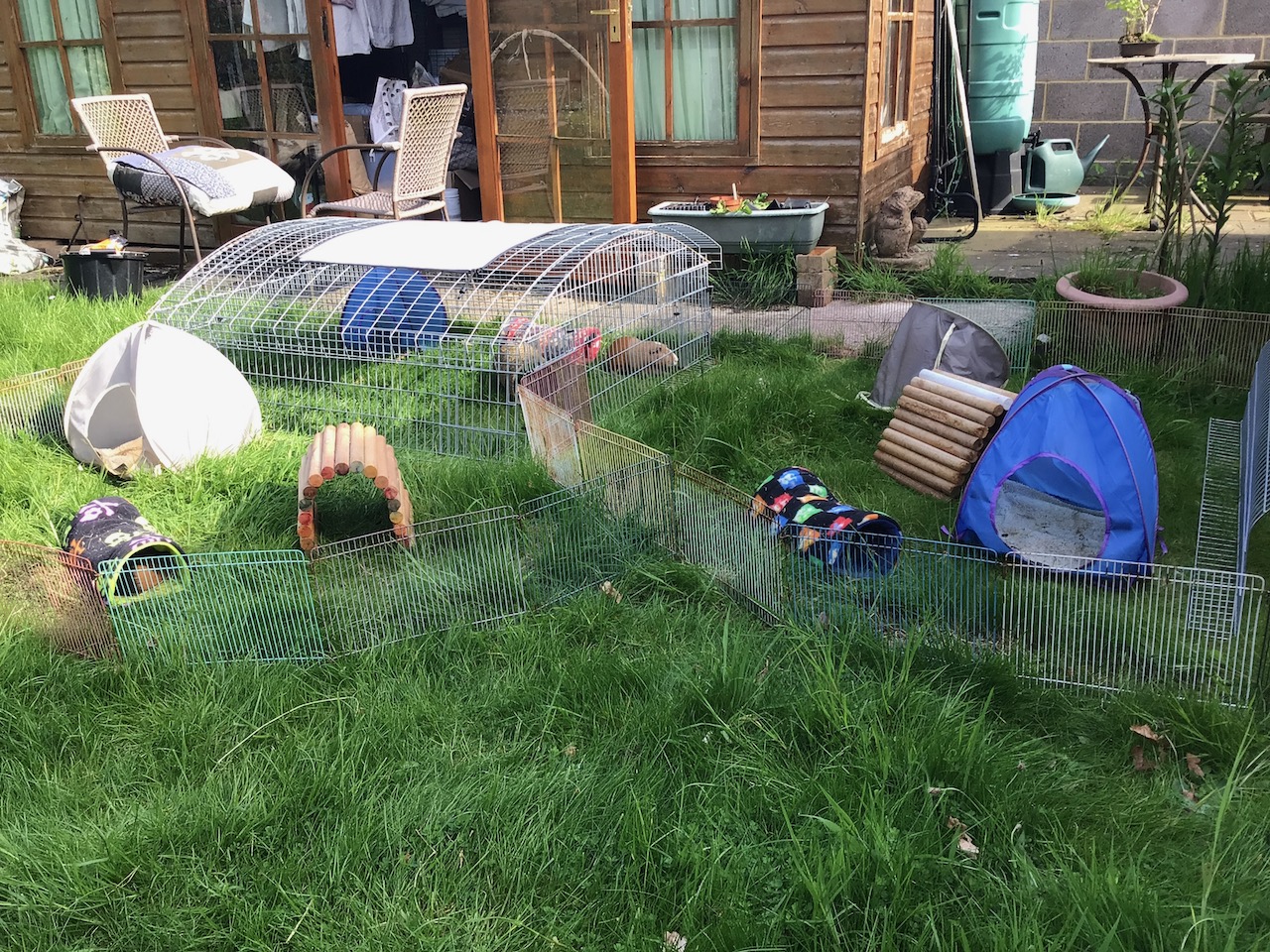 Mummy says we should be going out most days this week coming. She spent today rearranging our runs, and also got her sunlounger out. It looked like a very hard job for her, with her hands so weak, but she got it in place and upright eventually. Then she sat in it and went to sleep for a bit.
