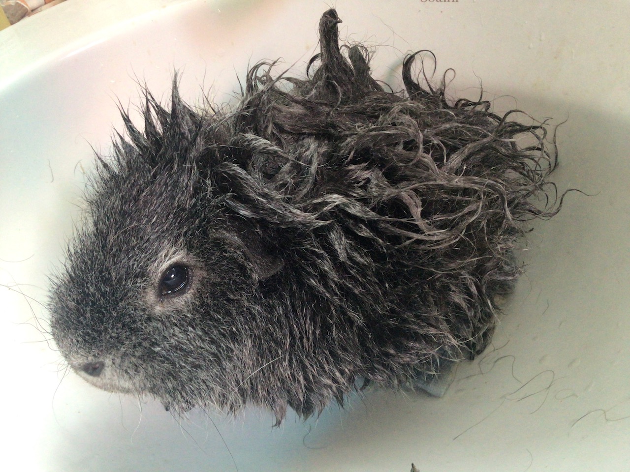 It was a very hot day again, so I enjoyed the nice slightly warm water trickling over my back. Mummy gave me one of the special Gorgeous Guineas Easy-rinse shampoos. It smelt nice, anyway. I was the best smelling boar in the house afterwards.
