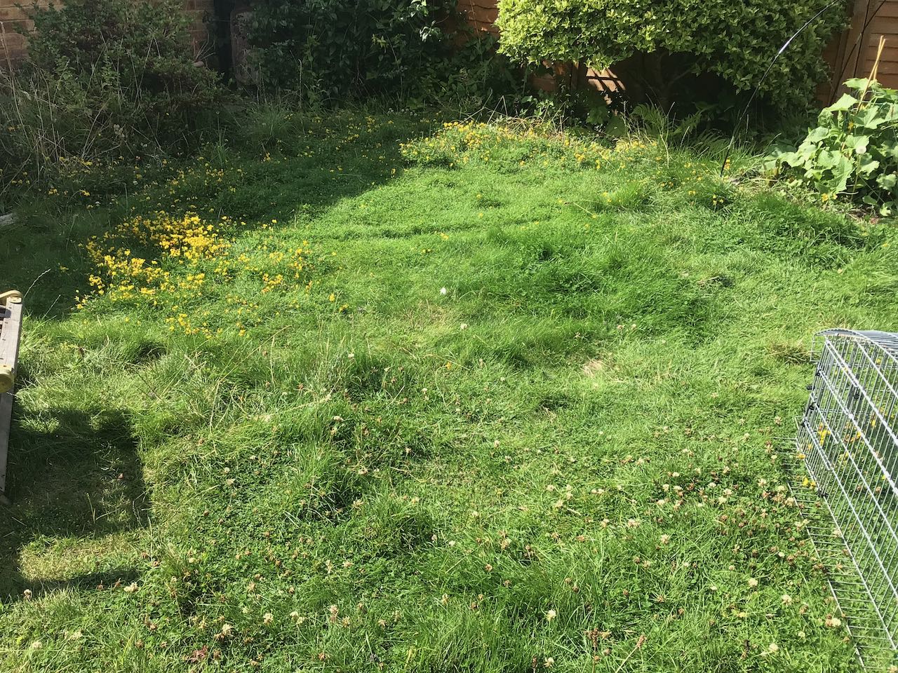 This week has been both sunny and wet. We went out on the grass lots of times, and Mummy moved the runs to a new part a little further from the house. She took a photo of where we’d been. You can tell where the join was between our run and Pippin’s! And where ours finished. Pippin seemed to leave a large patch of grass and clover. Mummy says we’ll have a chance to eat that later.