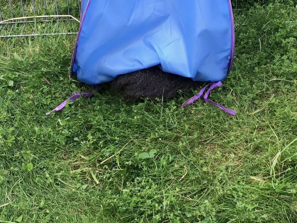 It isn’t as if anything different has happened these last two weeks. It rains sometimes, and then we can’t go out on the grass. It dries up by the afternoon sometimes, and then we go out. We’ve had the new awning out as well, and that gives us extra shade from midday onwards, when we couldn’t go out before as it was in the bright sunshine.