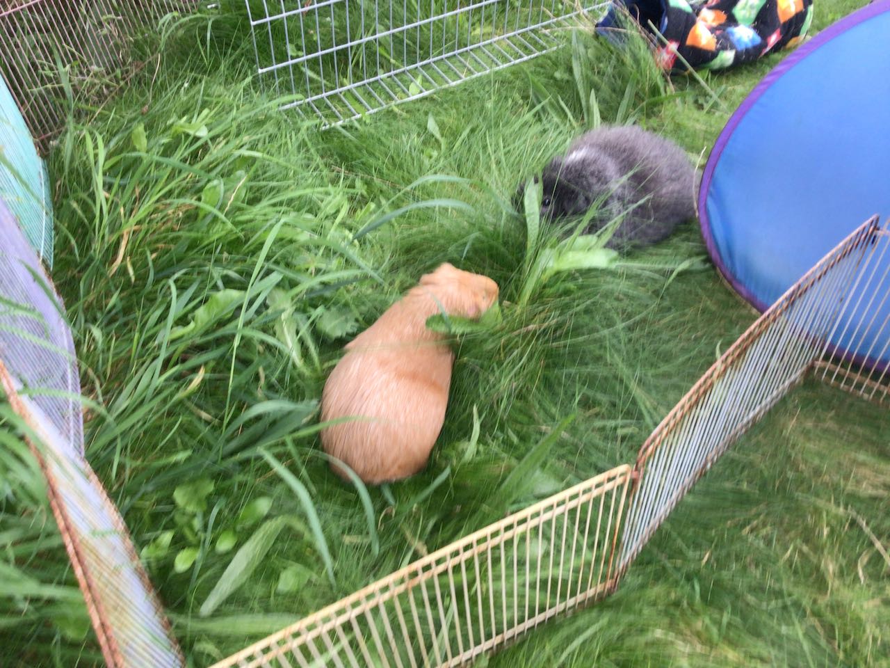 I know it’s not exactly the most exciting news you’re getting from me, but we have a very relaxed life. The only variation, really, is whether it’s nice enough for us to go outside and eat grass. Last week it was nice enough on several days, and Mummy moved our runs again so we could have a go at levelling up her grass in another spot. We’re very good at that.