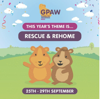 Hello, Locksley here. It was three years since Mummy adopted us from the Rescue on Saturday, and by coincidence this week is Guinea Pig Awareness Week, and they are specially promoting the work of Rescues.