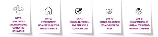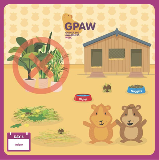 They are also talking about the five basic needs of guinea pigs, or at least of all animals and how it applies to guinea pigs. They are talking about one each day.