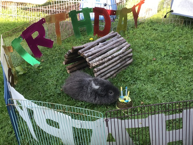 But the other thing is – we have fresh grass. Every time we move our runs, we go onto grass that hasn’t been used for at least two weeks. Some years it goes dry in patches, but this year it’s fine. A lot of clover, but we don’t mind that. Mummy wants us to eat the other flowers and leaves she’s carefully added to our grass, but we often don’t. She says Roscoe and the others used to love them. Yeah, well Roscoe had a lot of funny ideas. I think we all still miss him though. Well, me and Locksley. Victor and Pippin never knew him, or Neville, or Biggles. They’ve seen the photos, though. They used to be out in the sun more, too. I’m glad we’ve got shade.