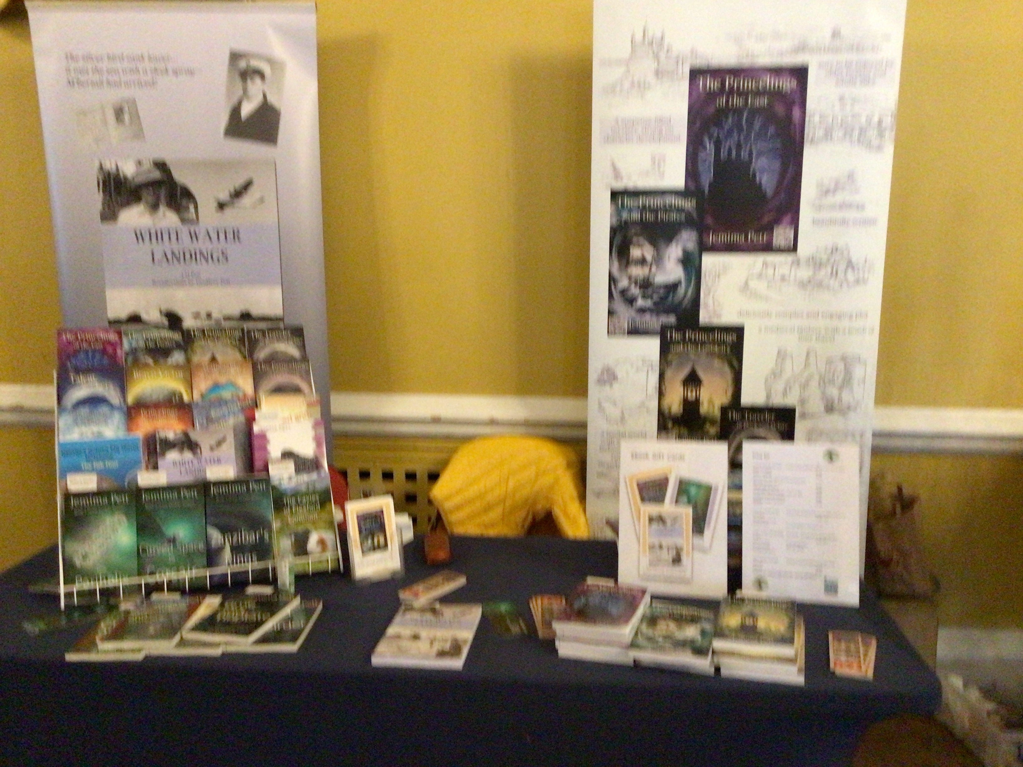 Nothing much happened while she was out. Nothing much happened when she was in, either. She tells us what she gets up to when she’s out, but I forget the detail. She’s usually selling books, but she was also showing her chapter illustrations. Locally, that was. And books in Salisbury, where it rained.