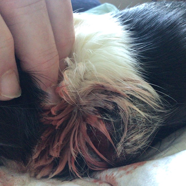 Thursday morning Mummy came in and saw me looking unhappy. Well, I was a bit scared when my lump started bleeding all over the place in the night. I didn’t know what to do. I crawled out of my tunnel so as not to mess it up too much, but there was a big pool in it. It was coming from my lump, which was very sore. Mummy helped me up, and cleaned it up, and spoke to Dr Rebekah on the phone, and gave me a pee pad to sit on while she changed my cage wear and put new fleeces and underpads in. She washed them and my tunnel, and the tunnel came back later.
