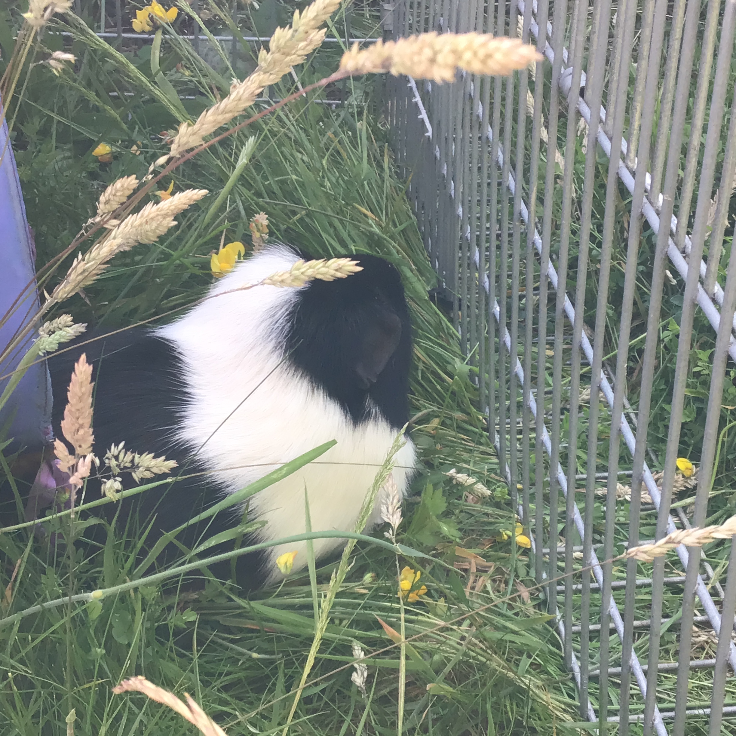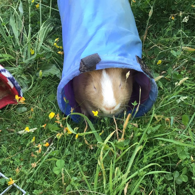 We’ve been out in the garden every evening for an hour or two. We have to wait till it’s cool enough for us to go out. I like it in the garden. I think Mummy’s going to move the runs for tomorrow, though. The grass won’t be quite so long then. Shame, as I’ve just discovered a great technique for eating these long bits!