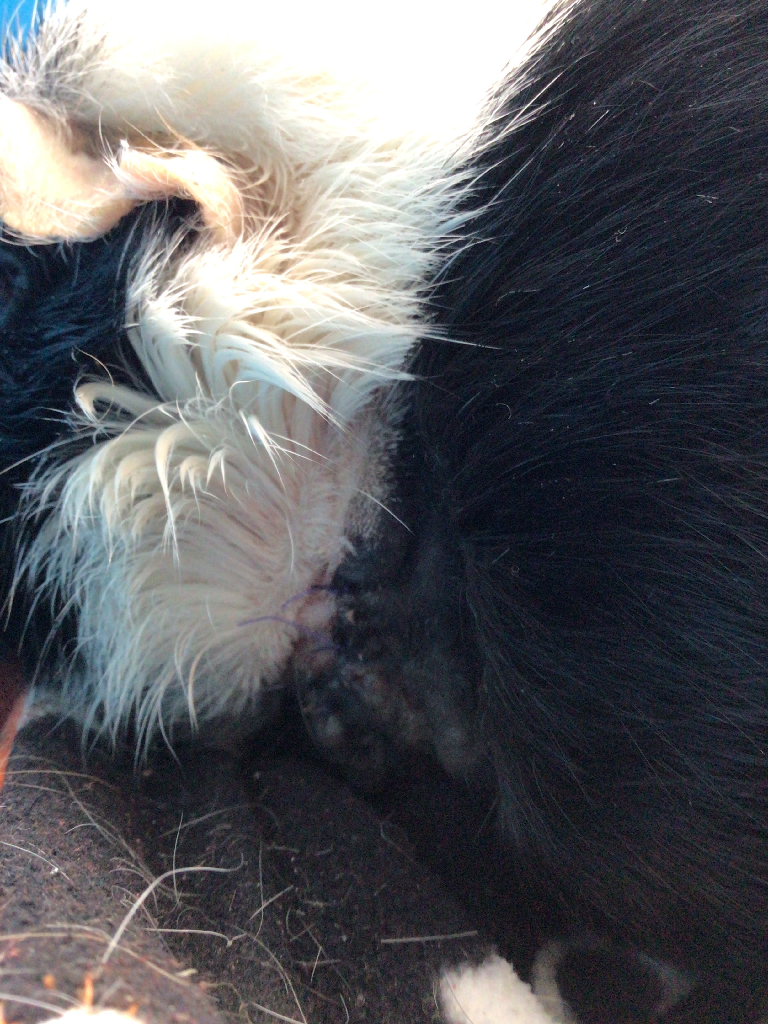 I’m sorry if I got you all upset last week with talk of doom and gloom, but Mummy was very, very worried about me. And I was very worried about my lump, which was horrid. But Dr Rebekah sent me to sleep, and took it away while I was sleeping, and stitched my skin back together. It looks very funny at present, because some of the white skin is mixed in with the black skin (my white hair grows from the first, my black hair from the latter).