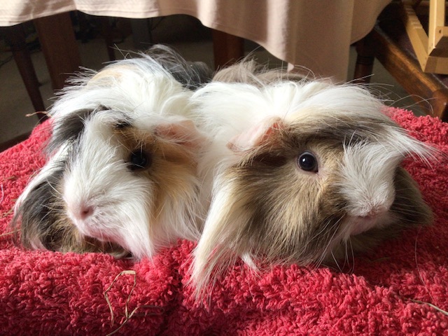 Ronnie and Reggie talk a lot. It’s not loud, just chatting to each other like they were still babies. I grew out of baby talk soon after I met Victor. They’re still doing it and they are nearly two. And they’re also quite small under all that hair. But they’ve been in a hutch in the Rescue for over a year so maybe they haven’t really grown up yet. They are going to meet Dr Rebekah tomorrow, just for a check up. But Dr Rebekah also sees the Rescue’s guinea pigs, so maybe they’ve already met.