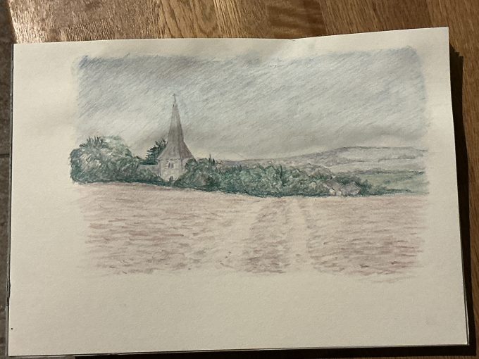 Mummy went for a walk on Saturday morning, then she took the car out for petrol and salad. The salad was for us, not the car. On Sunday she went back up the hill to take a photo of the church because she said it was going to rain and it would make a nice picture. And it started raining when she was on her way back, and hasn’t stopped yet. She was going to go to Arundel and visit the castle today, so she won’t get too wet, but she found out it’s closed on Mondays, so she’s going to a bird place with hides instead. What do they hide?